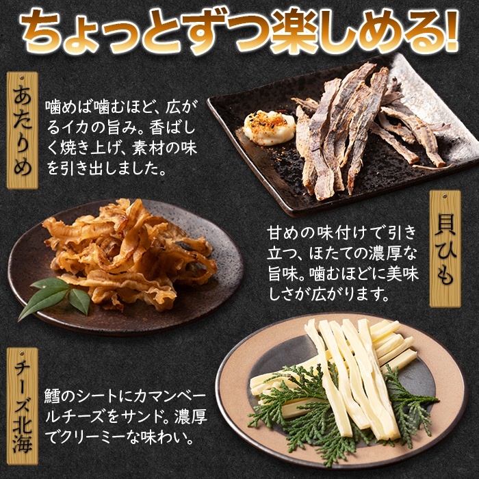 噛めば噛むほど、クセになる!!おつまみ3種(あたりめ 貝ひも チーズ北海)