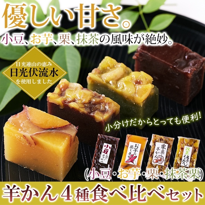 昭和33年創業の老舗の手作り!!羊かん4種食べ比べセット(小豆・お芋・栗・抹茶栗)4種類×2本セット [SNC00010158]