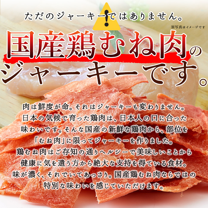 ヘルシーで美味安全な国産の鶏むね肉をジャーキーにしました。ハム屋さんのこだわりがぎゅっと詰まっています!!
