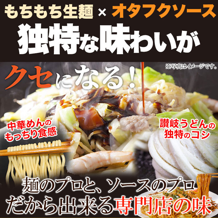 讃岐製法で作るコシのある麺と、こだわりの濃厚オタフクソース!麺のプロとソースのプロ だから出来る専門店の味!!ワンランク上の焼きそばです♪