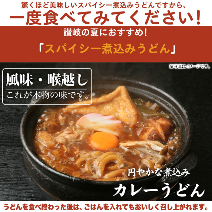 本場香川のさぬきうどんです!!やみつき、つるつる麺に絡む程よいカレースープ付(粉末)です。