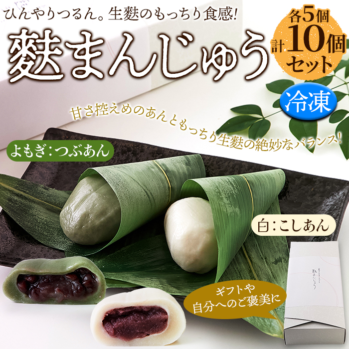ひんやりつるん。生麩のもっちり食感!!麩まんじゅう(こしあん・よもぎ) 各5計10個≪冷凍≫