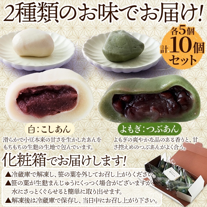 ひんやりつるん。生麩のもっちり食感!!麩まんじゅう(こしあん・よもぎ) 各5計10個≪冷凍≫ [SM00011357]