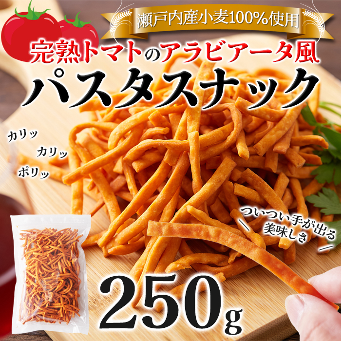 瀬戸内産小麦100%使用!手が汚れにくく食べやすい!!完熟トマトのアラビアータ風パスタスナック250g× 16個 [SM00011196B]