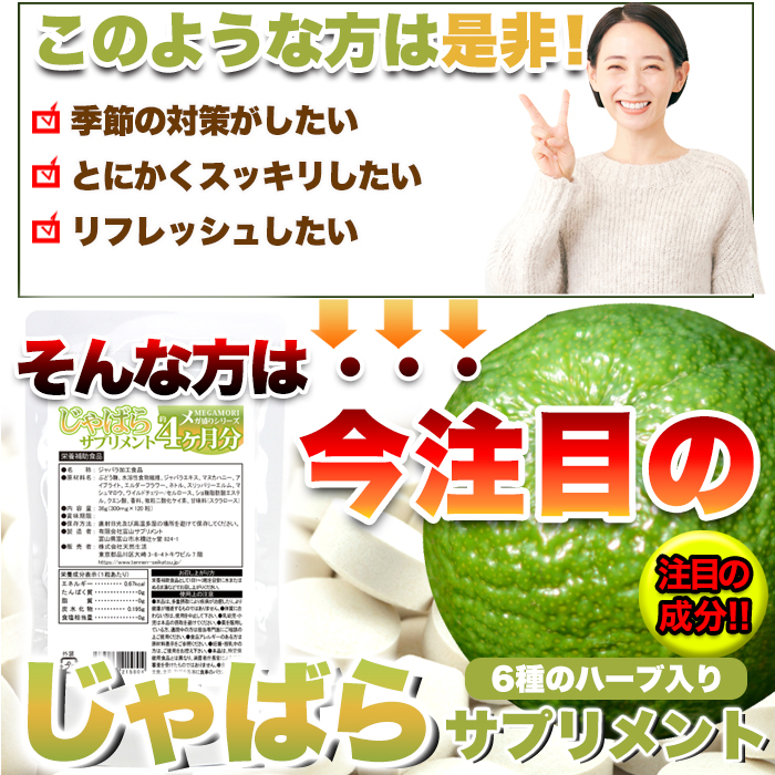 TVCMで話題の成分ナリルチンを多く含んだ幻の果実じゃばらのサプリメント!!6種類の天然ハーブ配合でスッキリをサポート!ぜひお試し下さい♪
