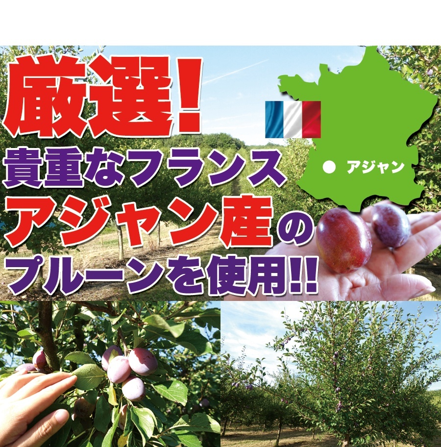 フランス産の中でも貴重なアジャン産のプルーンを使用!栄養豊富!!芳醇な香りと柔らかい果肉をお楽しみください♪