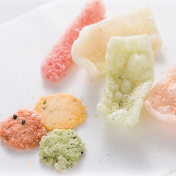 ■原材料名:澱粉(国内製造)、えび、植物油脂、小麦粉、食塩、砂糖、黒ごま、あおさ、わかめ、かに、いか、青のり/加工デンプン、調味料(アミノ酸等)、着色料(アナトー、紅麹、クチナシ、とうがらし色素)、膨張剤、(一部にえび・小麦・いか・ごま・かに・大豆、ゼラチンを含む)