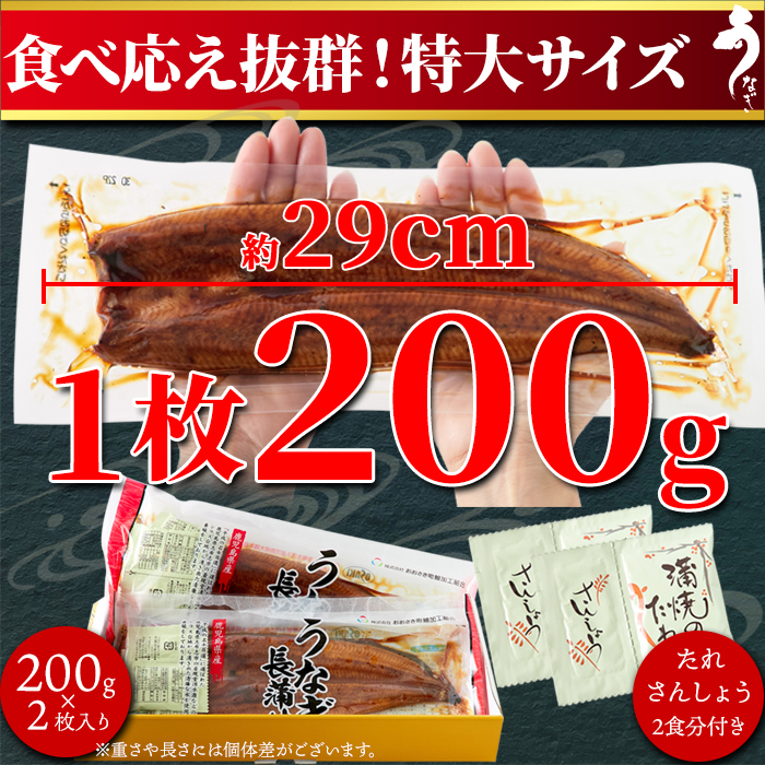 日本ギフト大賞鹿児島県賞受賞!!国産特大うなぎ蒲焼き200g×2袋