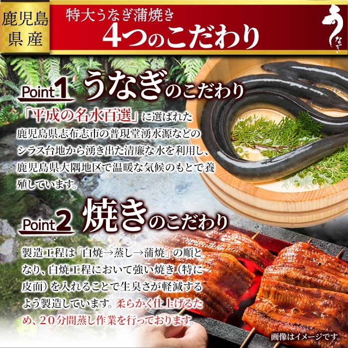 鹿児島県産!!こだわりのつまった特大うなぎ蒲焼き!!ふっくらジューシーで食べ応え満点♪化粧箱入りで父の日の贈り物にもおすすめです!!