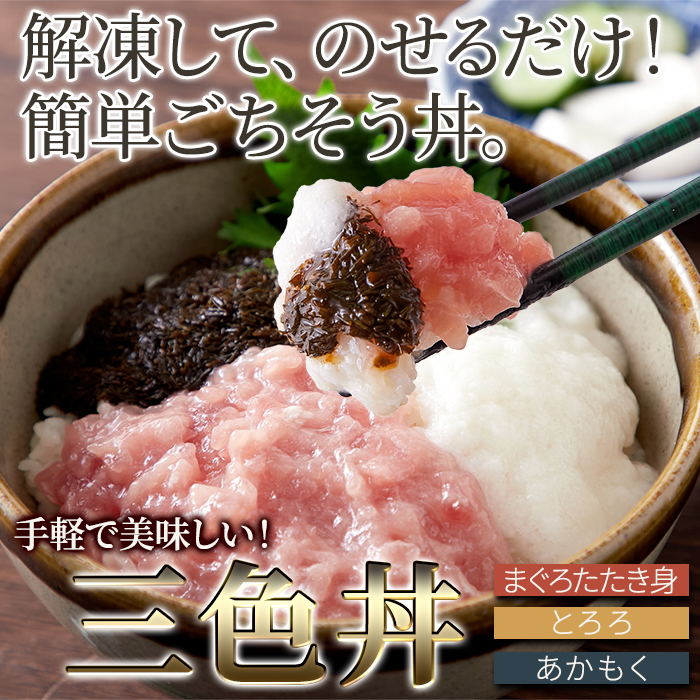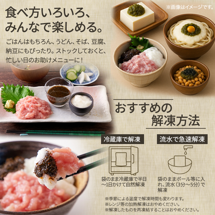 解凍して乗せるだけ!手軽で美味しい!3色丼(まぐろたたき身、とろろ、あかもく)5食セット [NK00000164]